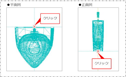 平面図の基準位置をクリックし、続けて正面図の基準位置をクリックします。