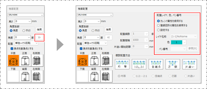 機器が選択され、[機器配置]ダイアログが表示されます。