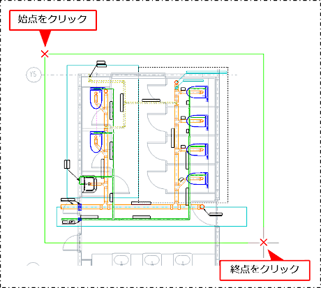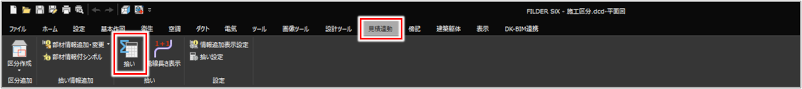設備属性のある配管・ダクト・機器・器具が対象です。図面内に作図されていない情報を拾いたい場合は、[部材情報付シンボル]コマンドから配置してください。