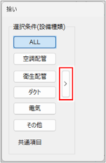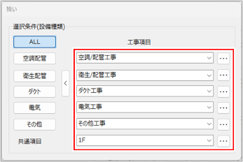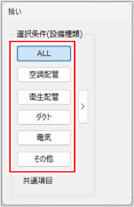 [選択条件(設備種類)]で[ALL]以外を選択している場合は、選択した選択条件の右側の工事項目と[共通項目]が入力できます。