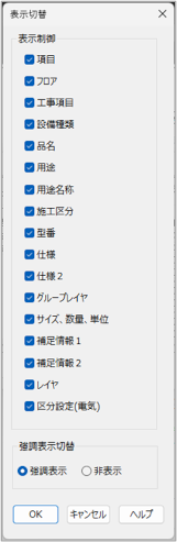 [表示切替]ダイアログが表示され、集計結果に表示する項目の表示・非表示を切り替えられます。