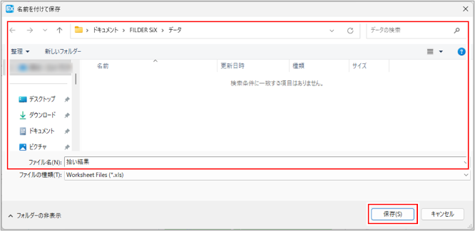 ファイルの保存場所やファイル名を指定し、[保存]ボタンをクリックします。
