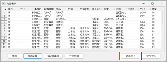 [内容表示]ダイアログの[保存終了]ボタンをクリックします。