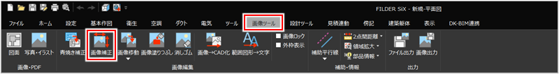 貼り付けた画像データは、図面上で傾き・距離などを補正したり、加工したりできます。
