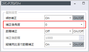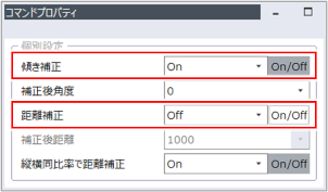 [傾き補正]を[On]、[距離補正]を[Off]に設定します。