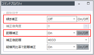 [傾き補正]を[Off]、[距離補正]を[On]に設定します。