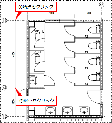 手順3で入力した寸法線と同じ寸法線の始点・終点をクリックします。