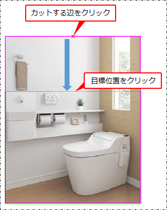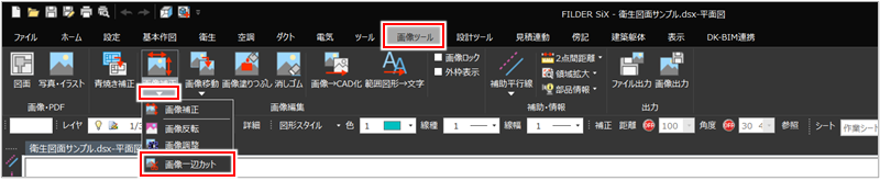 [画像ツール]タブの[画像補正]プルダウンメニューから[画像一辺カット]コマンド(