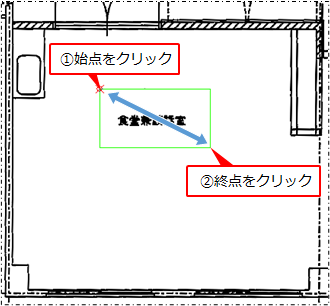 [指示方法]で[矩形指示]を選択した場合は、塗りつぶす範囲の始点・終点をクリックします。