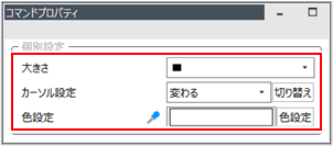 画面表示を拡大・縮小した際、消しゴム(カーソル)の大きさを画面表示に合わせて変える場合は、[変わる]を選択します。[切り替え]ボタンをクリックしても、[変わる][変わらない]が切り替わります。 |
