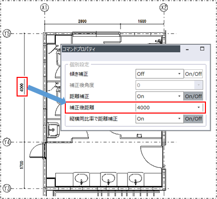 画像データ上に記載されている寸法を、[補正後距離]に入力します。