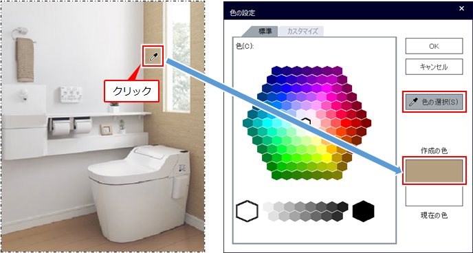 [色設定]ボタンをクリックして、塗りつぶしの色をダイアログで設定します。