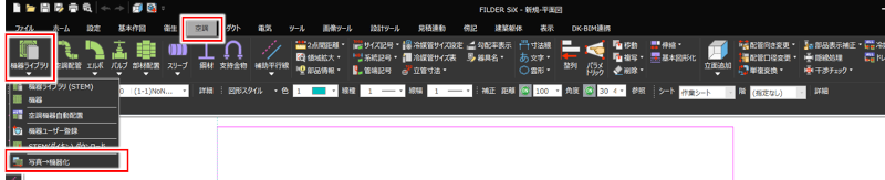 [空調]タブの[機器ライブラリ]プルダウンメニューから[写真→機器化]コマンド(