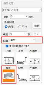 機器の配置方法から「単独」を選択し、外形図から「写真」を選択します。