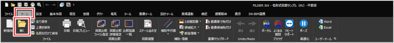 既存のFILDER SiX図面ファイルを[開く]コマンドから開きます。