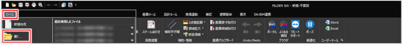 既存の図面ファイルを[開く]コマンドから開きます。FILDER SiXの画面に、図面ファイルをドラッグ&ドロップして開くこともできます。