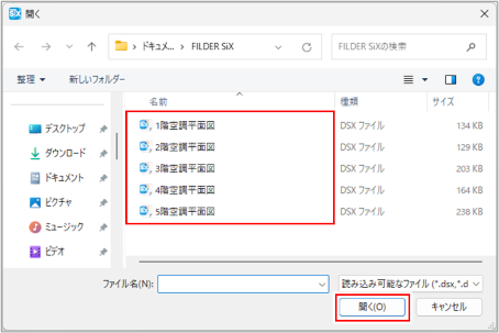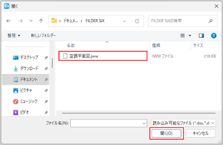 FILDER SiX図面ファイルを[開く]コマンドで開く