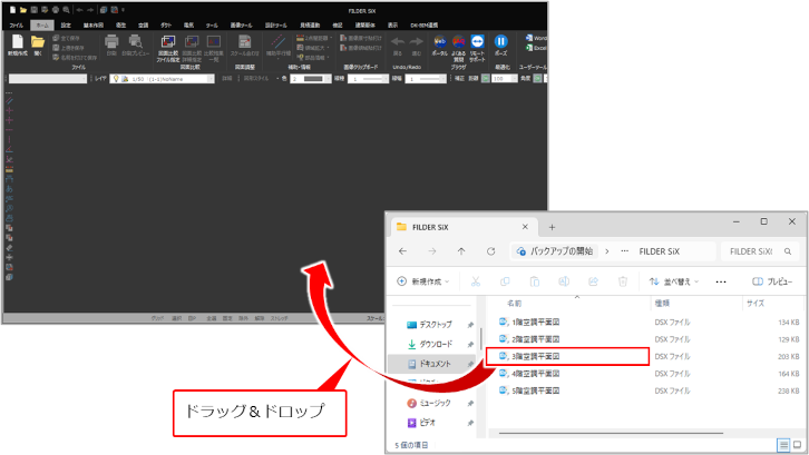 FILDER SiX図面ファイルをドラッグ&ドロップで開く
