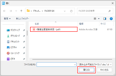 PDFファイルを選択し、[開く]ボタンをクリックします。