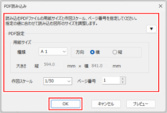 - DWG・DXFファイルは、用紙サイズと作図スケールなどの図面情報を設定して開くことができます。