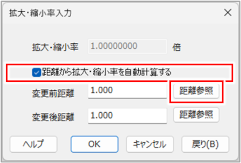 [距離から拡大・縮小率を自動計算する]にチェックを付け、[変更前距離]の[距離参照]ボタンをクリックします。