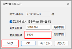 [変更前距離]に距離が入力され、[拡大・縮小率入力]ダイアログが再表示されます。