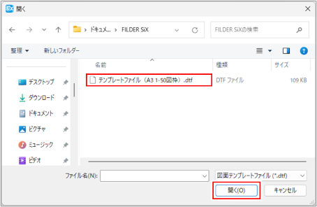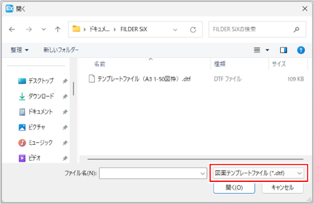 ファイルの種類で[図面テンプレートファイル(*.dtf)]を選択します。