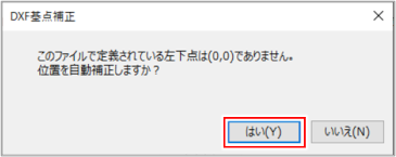 [DXF基点補正]ダイアログが表示された場合は、[はい]ボタンをクリックします。