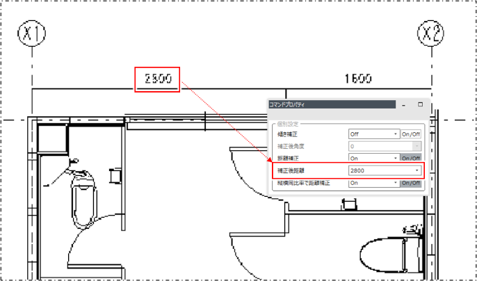 [変更後距離]に数値を入力し、[OK]ボタンをクリックします。