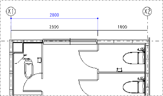 ここでは、例として開いた図面の寸法を正しい寸法に合わせます。