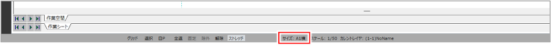図面ファイルを開いた後に用紙サイズや作図スケールを変更するには、[ファイル]タブの[図面情報]または画面最下部の「サイズ」をクリックします。倍率を指定して図形の大きさを変更することもできます。詳しくは、以下を参照してください。