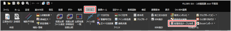 [ツール]タブの[配管部品テーブル作成]コマンド(