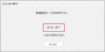 配管部品テーブル作成の進捗状況が表示されます。「100% 完了」と表示されるまで待ちます。