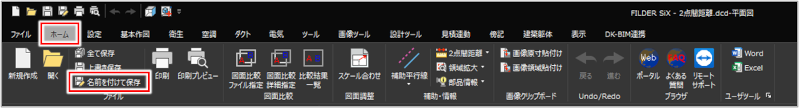 配管部品テーブルが作成されたら、[ホーム]タブの[名前を付けて保存]コマンド(