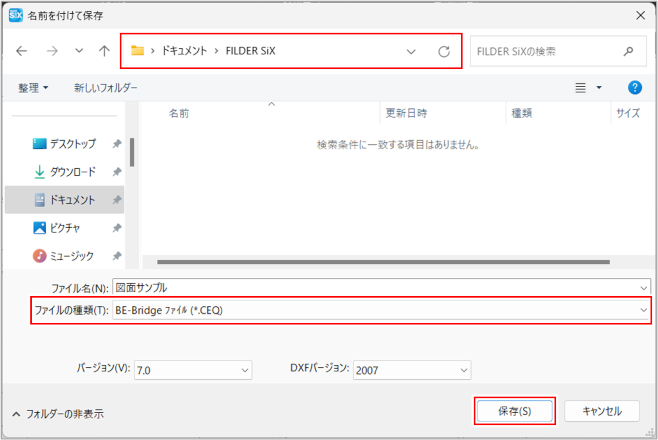 [ファイルの種類]から[BE-Bridgeファイル(*.CEQ)]を選択して、保存場所を指定し、[保存]ボタンをクリックします。