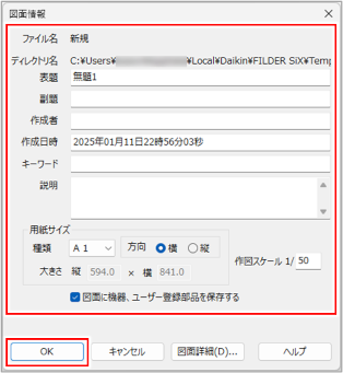 図面情報を設定し、[OK]ボタンをクリックします。