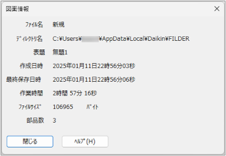 図面ファイルを作成した日時が表示されます。 |