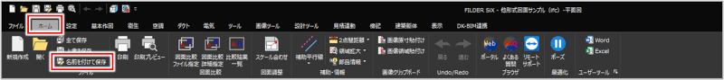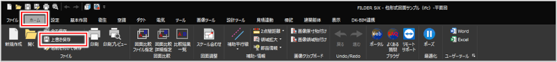 作成した図面ファイルを保存します。以下の保存方法があります。