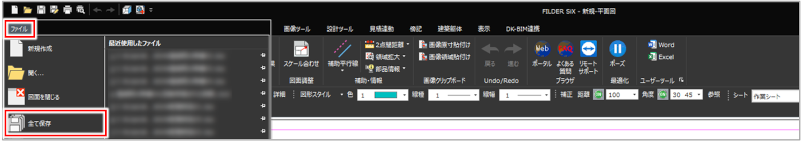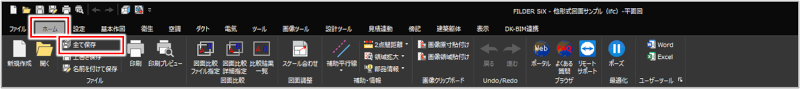 [ホーム]タブ>[全て保存] [ファイル]タブ>[全て保存] |