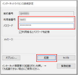 [利用者番号][パスワード]を入力し、[起動]ボタンをクリックします。