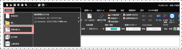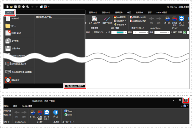 [ファイル]タブの[FILDER SiXを終了]をクリックするか、画面右上の[×]をクリックします。
