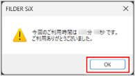 ご利用時間を表示したダイアログで、[OK]ボタンをクリックします。
