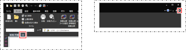 図面を保存する場合は[はい]ボタン、保存しない場合は[いいえ]ボタンをクリックします。詳しくは、以下を参照してください。 |