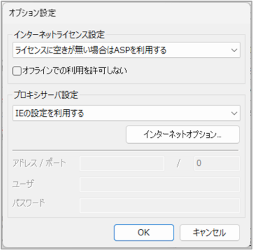 [オプション設定]ダイアログで、インターネットライセンスに関して設定できます。