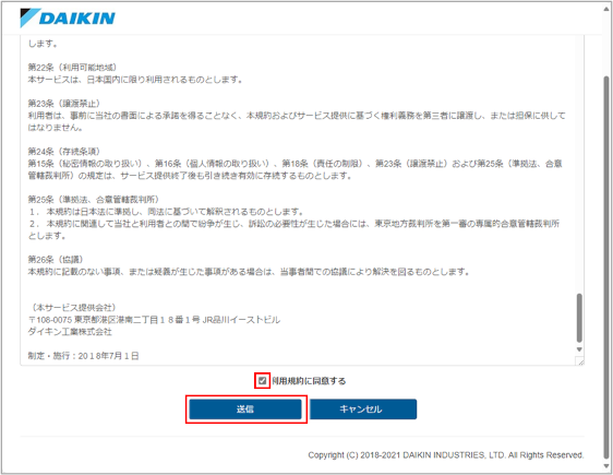 「DK-BIM利用規約」の内容を確認し、[利用規約に同意する]にチェックを付け、[送信]ボタンをクリックします。