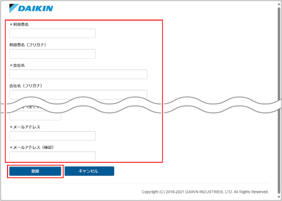 利用者名などの情報を入力し、[登録]ボタンをクリックします。