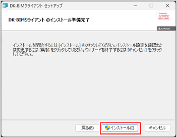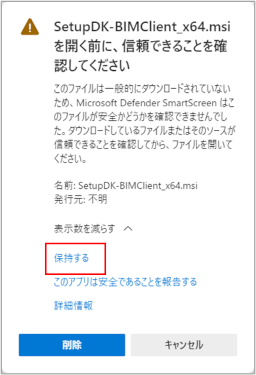DK-BIMクライアントのインストーラがダウンロードされます。