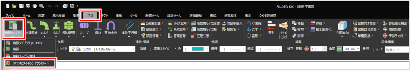 [空調]タブの[機器ライブラリ]プルダウンメニューから[STEM(ダイキン)ダウンロード](