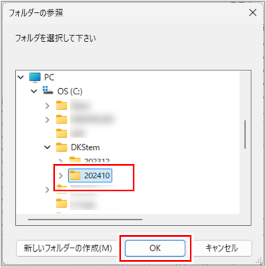 [c:\DKStem]フォルダの、インストールしたバージョンのフォルダを選択し、[OK]ボタンをクリックします。