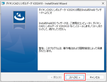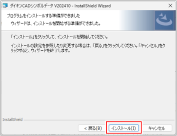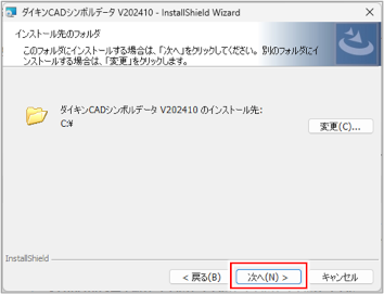 インストール先は、ダウンロードしたデータの展開先にある[DAIKINCAD]フォルダです。